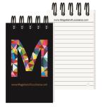 Our Impression Journal features a white 15 pt. front cover with a protective gloss coating and a durable, thick 50 pt. stock black back cover unless otherwise specified. Includes 80 pages of recycled 60 Lb. white offset inside sheets with black logo and rules, graph, or euro dot printed on the front of each sheet. Recycled symbol is printed in the lower right corner and the back of each sheet is blank. Comes Wire-O bound on the top in black. 3″ W x 5″ L