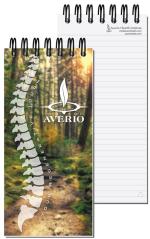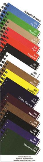 Our Impression Journal features a white 15 pt. front cover with a protective gloss coating and a durable, thick 50 pt. stock black back cover unless otherwise specified. Includes 80 pages of recycled 60 Lb. white offset inside sheets with black logo and rules, graph, or euro dot printed on the front of each sheet. Recycled symbol is printed in the lower right corner and the back of each sheet is blank. Comes Wire-O bound on top in black. 4″ W x 8 1/2″ L