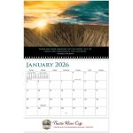 A Truly Inspired Promotional Wall Calendar! 13 month wall calendar from December to December with large blocks for writing notes and 3 year at-a-glance back cover. Beautiful full color photos with breathtaking, inspirational scenes. Features spiral binding. Add your company name and logo and see a realistic product preview of your imprint. Eco-friendly and Recyclable. Made from 10% post-consumer waste. Complies with Prop 65. 11″ W x 9.5″ H