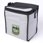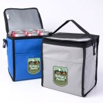Discover the Ultimate Companion for Your On-The-Go Dining Needs with our 6 Can Lunch Cooler! Add your company logo or personalized design to showcase your brand wherever your adventures take you. Ideal for transporting beverages and food items such as lunches, snacks, or drinks to picnics, outdoor events, work, or school. Heat sealed PEVA lining. Insulated to maintain temperature. Showcase your brand by imprinting your name or logo on the front! Complies with Prop 65. 8.3″ W x 9.1″ H x 6.7″ D