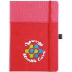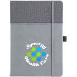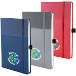 The Newport Journal is an Affordable Addition for any Office! Features a soft faux leather cover with an inlaid fabric cover design. Each Newport journal has 80 sheets (160 ruled pages). Also built into the journal is a ribbon page marker and a pocket inside the back cover to store documents. Add your full color imprinted message on each journal for the finishing touch. Complies with Prop 65. 5.75″ W x 8.75″ H