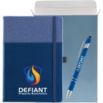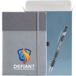 The Newport™ Journal & Ultima™ Pen Combined to Make the ULTIMATE Gift Set! This hard cover journal features a soft faux leather cover with an inlaid fabric cover design. Each journal has 80 sheets (160 ruled pages), a ribbon page marker and a pocket inside the back cover to store documents. The Ultima™ Stylus Pen features our Softex™ soft touch finish that provides a comfortable grip when writing and a stylus on the end to be used for easy touch screen accessibility. Complies with Prop 65. 5.75″ W x 8.25″ H