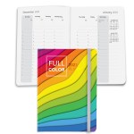 Organize your to-dos for 2022 with our 4cp perfect bound planners. There are weekly, monthly and yearly overviews, plus plenty of lined pages for important notes. This planner features a front and back semi-flexible boardroom faux leather cover with flat elastic closure. 75 sheets total with dated weekly planner as well as two years calendar pages . Create your own cover that will make a lasting impression. Complies with Prop 65. 5″ W x 7″ L