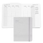 Organize your to-dos for 2022 with our 4cp perfect bound planners. There are weekly, monthly and yearly overviews, plus plenty of lined pages for important notes. This planner features a front and back semi-flexible boardroom faux leather cover with flat elastic closure. 75 sheets total with dated weekly planner as well as two years calendar pages . Create your own cover that will make a lasting impression. Complies with Prop 65. 5″ W x 7″ L