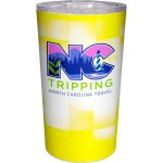 20 oz. tumbler with Shaded Checkers design. Includes sip top lid. BPA free; not recommended for dishwasher or microwave. This tumbler is not insulated and not recommended for hot beverages. This item qualifies for Dim Weight; Please call or email for freight quote. Complies with FDA, Prop 65. 3.25″ D x 6.5″ H
