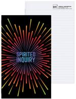 This memo book features a white 10 pt. cover clear coated on 1 side, printed on the outside front and/or back covers. Front and back copy can be the same or different. Back cover will be blank unless otherwise requested. Inside contains 50 Lb. white perforated sheets (10 sheets/20 leaves/40 pages) for easy removal. Light blue rules are printed on both sides. Stapled on the left side with 2 staples. 5″ W x 8″ H