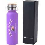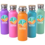 Enhance your style with the vibrant and cheerful Spirit Brite water bottle, featuring a sleek bamboo lid. Promote sustainability and showcase your brand by fully customizing the bottle in full color with your company logo or message. It’s a thoughtful way to demonstrate your commitment to the environment and your brand.. Stainless steel vacuum bottle for hot or cold beverages. The double wall insulated powder coated exterior does not sweat & ice won’t melt for 12+ hours . Complies with Prop 65. 2.17″ D x 2.95″ D x 9.84″ H