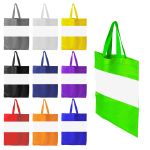 Crafted from durable 85gsm non-woven polypropylene, this high-quality tote bag features a sleek white polypropylene panel overlay that beautifully showcases your full-color logo. The double reinforced handles ensure maximum strength and longevity. Proudly made in the USA using imported materials, with a minimum order quantity of 150 pieces per item color. Complies with Prop 65. 13″ L x 17.25″ H