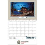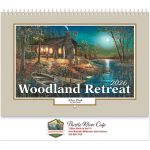 Impress Your Customers with this Woodland Retreat Wall Calendar! 13 month wall calendar from December to December with large blocks for writing notes and a 3 year calendar on the back cover. Stunning outdoor woodland scenes from artist Jim Hansel. Features spiral binding. High quality gloss paper with UV coated cover; Eco-friendly and Recyclable. Made from 10% post-consumer waste. Add your company name and logo and see a realistic product preview of your imprint. Complies with Prop 65. 11″ W x 9.5″ H
