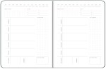 New! Full-color 14 pt. wraparound outer covers on Gloss White Cover stock with Gloss UV coat (Matte is available upon request, Soft Touch available). 28 sheets non-dated weekly planner filler on 50# paper with thread-sewn, lay-flat binding (choose red, yellow, blue, brown, black, white or silver) and 2 outside rounded corners. Complies with FSC. 7″ W x 9″ H