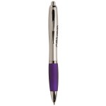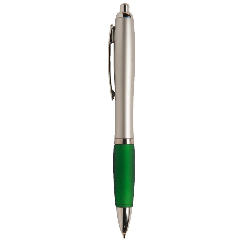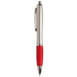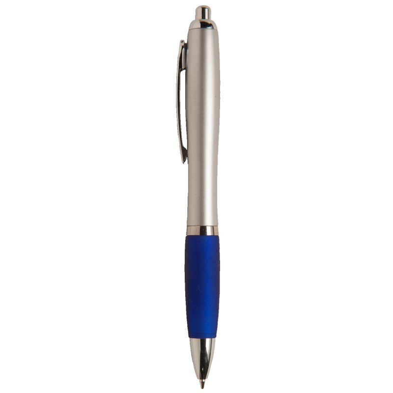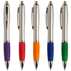 Classic retractable ballpoint pen with soft rubber grip, silver barrel with chrome ferrule, plunger, clip and ring. Colored rubber grip, black medium point and high quality glide write ink. Complies with Prop 65. 5 1/2″ W x 7/16″ Diameter