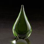A clear glass teardrop of art glass accented by varying color hues. 3.25″ W x 5.5″ H x 2.0″ D