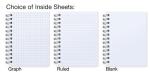 Our Gallery Journal features a 30 pt. translucent poly cover with an 80 Lb. insert sheet showing through and a heavy black paperboard back cover. Includes 60 Lb. white offset inside sheets with light gray rules or graph printed on both sides. Comes Wire-O bound on the left side. 4″ W x 6″ H