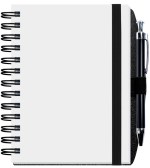 Our Gallery Journal features a 30 pt. translucent poly cover with an 80 Lb. insert sheet showing through and a heavy black paperboard back cover. Includes 60 Lb. white offset inside sheets with light gray rules or graph printed on both sides. Comes Wire-O bound on the left side with a pen safe back and a pen. 5″ W x 7″ H