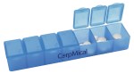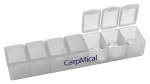 This reliable seven-compartment pill box helps keep your medication organized throughout the week. Each compartment features a snap-lid closure, as well as day-of-the-week and Braille markings. 6.125″ W x 1.25″ H x 1″ D