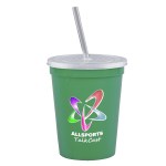 Take your drinkware to the next level with this 16 oz. smooth-sided reusable stadium cup complete with a press-on lid and straw to keep spills at bay. Perfect for parties, sporting events, and company gatherings, this American-made cup offers a durable alternative to disposable drinkware. Plus, you can mix and match lid and cup colors for even more fun. Complies with ANSI, CPSIA, FDA, Prop 65. 3.625″ W x 4.375″ H x 3.625″ D