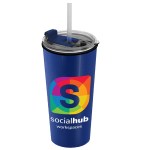 Power up your day with this 18 oz. double-wall insulated travel tumbler. Generously sized, this cup has a 2-in1 sip-through lid with a straw for added convenience. Mix and match tumbler and lid colors to create a look that?s uniquely yours. Complies with ANSI, CPSIA, FDA, Prop 65. 3.625″ W x 7.5″ H x 3.625″ D