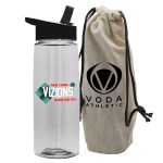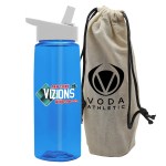 This durable 26 oz. Tritan® bottle is ready for gifting with an imprinted cotton drawstring bag. Its crowd-pleasing design offers an extra-large opening for easy filling and cleaning and a flip-straw lid with a molded carry loop for effortless transport. With mix-and-match lid and bottle color options, it?s a perfect fit for events, gyms, schools, and everyday use. Add an optional Motivational Measurement imprint on the second side to easily track your daily water intake, available at no extra charge when the screen print ink color is the same color as your side-one imprint. Complies with ANSI, CPSIA, FDA, Prop 65. 3.125″ W x 9.25″ H x 3.125″ D