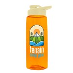 This durable 26 oz. Tritan® Renew bottle is a crowd-pleasing option, designed with an extra-large opening for easy filling and cleaning. It features a flip-top, drink-through lid with a molded carry loop for effortless transport, making it ideal for life on the go. With mix-and-match lid and bottle color options, it?s a perfect fit for events, gyms, and everyday use. Add an optional Motivational Measurement imprint on the second side to easily track your daily water intake, available at no extra charge when using the same screen print ink color as your side-one imprint. Bottle is molded from Tritan® Renew, which contains up to 50% post-consumer recycled polyester based on mass balance calculations. Complies with Prop 65. 3.125″ W x 9″ H x 3.125″ D