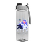 This durable 26 oz. Tritan® Renew bottle is a crowd-pleasing option, designed with an extra-large opening for easy filling and cleaning. It features a sip-through spout with a quick-snap cover to keep spills at bay and an attached wrist strap to make on-the-go hydration a breeze. With mix-and-match lid and bottle color options, it?s a perfect fit for events, gyms, and everyday use. Add an optional Motivational Measurement imprint on the second side to easily track your daily water intake, available at no extra charge when using the same screen print ink color as your side-one imprint. Bottle is molded from Tritan® Renew, which contains up to 50% post-consumer recycled polyester based on mass balance calculations. Complies with Prop 65. 3.125″ W x 9.5″ H x 3.125″ D