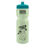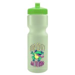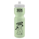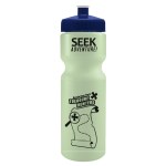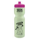 This classic 28 oz. sport bottle has a glow-in-the-dark design that keeps it visible even in low-light settings, making it perfect for evening workouts, camping, or late-night adventures. The push-pull lid provides easy sipping, and the contoured, textured design allows for a secure grip. It fits standard bike cages and offers mix-and-match bottle and lid colors for a personalized look. Up to 40% of the bottle is made from post-industrial recycled HDPE. Complies with ANSI, CPSIA, FDA, Prop 65. 2.875″ W x 9.75″ H x 2.875″ D
