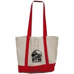 This generously sized tote is crafted from 100% natural 10 oz. cotton, delivering everyday durability with a clean, classic look. A front slip pocket, colored handles, bottom accent, and long shoulder-length straps make it as functional as it is stylish. Perfect for errands, events, or daily commuting, this oversized carryall keeps all your essentials comfortably within reach. Complies with ANSI, CPSIA, Prop 65. 20.5″ W x 13″ H x 7″ D