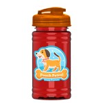 This handy-sized 16 oz. bottle makes on-the-go hydration a breeze. Its straight-wall, translucent design makes it easy to monitor intake, while the drink-through, flip-top lid adds convenience for on-the-go sipping. Mix and match bottle and lid colors for a custom look that lets brand personalities shine. 98% of total product made from post-consumer recycled PET. Complies with ANSI, CPSIA, FDA, Prop 65. 2.875″ W x 7″ H x 2.875″ D