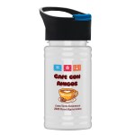 This handy-sized 16 oz. bottle makes on-the-go hydration a breeze. Its straight-wall, translucent design makes it easy to monitor intake, while the sip-through lid with pop-up cover adds convenience for on-the-go sipping. Mix and match bottle and lid colors for a custom look that lets brand personalities shine. 98% of total product made from post-consumer recycled PET. Complies with ANSI, CPSIA, FDA, Prop 65. 2.875″ W x 7″ H x 2.875″ D