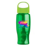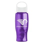 Quench your thirst while on the go with this 27 oz. transparent, contoured bottle, designed with a tapered bottom that fits most cup holders. The screw-on lid with built-in handle allows for on-the-go sips, making it a perfect companion for gyms, outdoor events, or everyday hydration. Mix and match lid and bottle colors for a customized look that matches your brand?s style. Complies with ANSI, CPSIA, FDA, Prop 65. 3.5″ W x 9.75″ H x 3.5″ D
