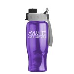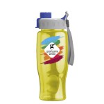 Quench your thirst while on the go with this 27 oz. transparent, contoured bottle, designed with a tapered bottom that fits most cup holders. The sip-through spout with quick-snap cover keeps spills at bay, making it a perfect companion for gyms, outdoor events, or everyday hydration. Mix and match lid and bottle colors for a customized look that matches your brand?s style. Complies with ANSI, CPSIA, FDA, Prop 65. 3.5″ W x 8.875″ H x 3.5″ D