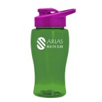 Ideal for everyday carry, this 18 oz. transparent, contoured bottle combines portability with a sleek tapered design that fits most cup holders. The flip-top, drink-through lid with molded carry loop allows for quick sips, making it a perfect companion for gyms, outdoor events, or everyday hydration. Lid and bottle colors can be mixed and matched for a customized look that aligns with any brand?s style. Complies with ANSI, CPSIA, FDA, Prop 65. 3.125″ W x 7.5″ H x 3.125″ D