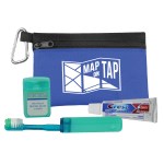 Freshen up on the go with this travel kit packed with everyday dental essentials. The zippered pouch with attached clip makes it easy to carry, while the included travel toothbrush, toothpaste, and waxed dental floss keep your smile looking its best. Complies with ANSI, CPSIA, Prop 65. 4″ W x 0.75″ H x 6″ D
