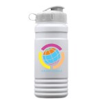 Stand out with this 20 oz. bottle featuring a unique straight-wall cylinder design and compact shape. Molded with 98% post-consumer recycled PET, it?s a reusable, sustainable option for everyday hydration needs. The convenient drink-through, flip-top lid makes it ideal for an on-the-go lifestyle, while mix-and-match lid and bottle color options let you create a unique look. Complies with ANSI, CPSIA, FDA, Prop 65. 2.875″ W x 8″ H x 2.875″ D