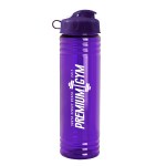 Stay refreshed with this 24 oz. sport bottle featuring raised ring accents. The drink-through, flip-top lid makes it a breeze to take with you for on-the-go hydration, and its slim design fits most cup holders. Mix and match bottle and lid colors to create a custom look. Plus, an optional Motivational Measurement imprint on the second side makes it easy to track your daily water intake, available at no extra charge when the screen print ink color is the same color as your side-one imprint. Complies with ANSI, CPSIA, FDA, Prop 65. 2.75″ W x 9.75″ H x 2.75″ D