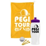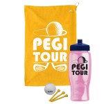 Hit the course prepared with this handy golf kit, complete with a microfiber towel, non-imprinted golf ball, and three non-imprinted tees. All items are conveniently packed inside a 27 oz. contoured sport bottle featuring a push-pull lid for easy hydration on the go. With mix-and-match lid, bottle, and towel color options, you can create a look that perfectly complements your brand. Ideal for tournaments, giveaways, or corporate events, this set is a hole-in-one! Complies with ANSI, CPSIA, Prop 65. 3.5″ W x 8.875″ H x 3.5″ D