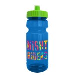 Designed for a busy lifestyle, this 24 oz. bottle features a contoured body with a textured grip for a secure hold while exercising, adventuring, or commuting. The push-pull lid makes it easy to sip on the move. With mix-and-match bottle and lid color options, it offers a customizable look that reflects any brand style. 98% of total product made from post-consumer recycled PET. Complies with ANSI, CPSIA, FDA, Prop 65. 2.75″ W x 8.75″ H x 2.75″ D