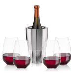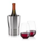 The Genoa Wine Cooler & Wine Glass Set brings a sleek, contemporary touch to any gathering. The stainless steel Genoa wine cooler keeps bottles perfectly chilled with its smooth, polished finish and modern ribbed design, while the crystal-clear wine glasses enhance every pour. Perfect for entertaining, gifting, or everyday enjoyment, this set combines style, quality, and functionality in one elegant presentation. Various wine glass styles are available.