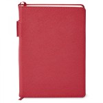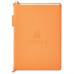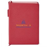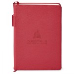 Take time to keep track of your dreams and ideas in the Toscano hard cover perfect bound journal. Its diamond-textured genuine leather cover encloses 192 perforated lined FSC ivory pages and using the color matched ribbon bookmark, finding the dated page you are looking for is simple. The unique color-match pen loop, discreetly integrated into the spine of the journal, expands as needed when holding your pen and then retracts. NOTE Laser touch branding method available on blue and black items only. Journal inner page dimension is 5 1/2″ x 8 1/8″. 5.75″ L x 8.25″ W