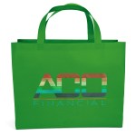 The affordable Giant Saver™ Budget Tote is made with 90 GSM non-woven material and features heat-sealed handles. An optional plastic bottom insert is available for purchase. Handles measure 1 1/2″W x 21″ long. 21″ W x 8 1/2″ D x 17″ H