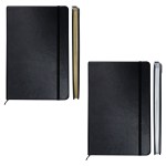 Introducing our premium hardcover notebook, featuring beautifully lined pages for all your note-taking needs. This elegant notebook comes complete with a convenient page marker and an elastic band to keep your thoughts and ideas secure. The finishing touch? Stunning gilded edges that add a touch of sophistication to this essential accessory. Elevate your writing experience with our top-quality notebook, designed to inspire creativity and organization in style. Complies with Prop 65. 5.5″ L x 8.25″ H