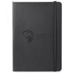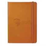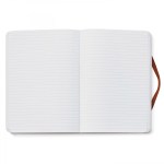 This notebook is all about feeling. Youll love the handcrafting of this Italian regenerated leather perfect-bound journal. Neatly enclosed by an elastic, the journal contains a gusseted pocket to gather your business cards and receipts and 192 white lined pages of FSC-certified paper, so youll feel great knowing that both the paper and leather were sourced in a socially responsible and environmentally friendly manner. Add to that the black gift box, and any brand will be proudly decorated on this notebook. Journal inner page dimension is 5 3/4″ x 8 1/4″. 5.75″ L x 8.25″ W