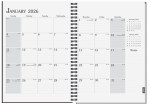 This journal planner features an 80 Lb. front cover and a heavy black or white paperboard back. Inside sheets are made from 60 Lb. white offset paper and include 14 months (December to January) followed by 50 sheets pre-printed with light gray rules on both sides. Comes Wire-O bound on the left side. 7″ L x 10″ W