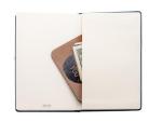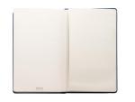 This journal has a soft, flexible cover with a debossed imprint. There’s 160 lined cream pages. It includes a matching elastic closure and a ribbon marker. There’s a pocket inside back cover. 5 1/4″ W x 8 1/4″ H