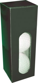 Golf ball box laminated for a high gloss finish. Custom packaging with four color printing and laminate on printed side. Boxes ship flat and require assembly. Not just outside the box thinking! Complies with Prop 65. 1.75″ D x 1.75″ W x 5″ H