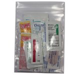 Golf Necessities Bag Includes The Following Packets: Lip Balm, Burn Gel, 2 Sunscreen Lotion, 2 Instant Hand Sanitizer, 2 Insect Repellent Wipes, 2 Sting Relief Wipes, 2 Lens Cleaner Wipes, And 4 Bandages. Complies with Prop 65.