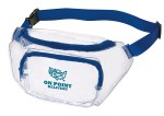 This clear fanny pack with adjustable waist strap is the perfect way to hold all your essentials on the go. Wear it around your waist or as a sling. 12.625″ W x 5.875″ H x 1.375″ D