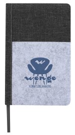 This journal features a polyester cover and a flexible felt pocket on the front that can be used to store business cards and other small items. It comes with 80 sheets of lined ivory paper and a matching-color bookmark. 5.25″ W x 8.25″ H x 0.6875″ D