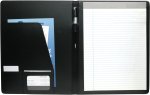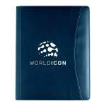 An executive crescent padfolio with slip pocket, lined notepad, and internal organization features like a business card holder. The FSC® label means that the materials used for this product come from well-managed FSC®-certified forests and other controlled sources. 12.5″ H