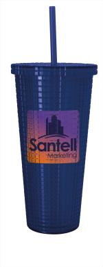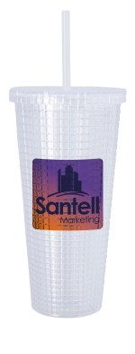 Enjoy your favorite cold beverage in this sweatproof tumbler with a stylish square pattern. The double-wall vacuum insulation helps keep your drink refreshingly cool, while the screw-on lid with a removable drinking straw adds convenience. Modern style is yours as you sip away from this to-go cup. 4.125″ Diameter x 5.875″ H