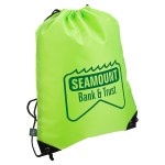 Grab ‘N Go RPET Budget Drawstring Backpack is made of 210D RPET, a recycled and reusable material. An attached, outside tag reads: “I used to be a plastic bottle”. Bag has a dual drawstring closure with reinforced corners. Complies with Prop 65. 13″ W x 17″ H
